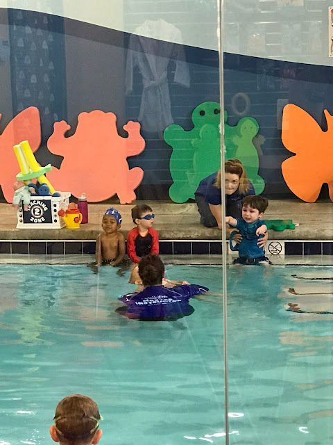 I have linked Aqua Tots so you can look them up yourself. They aren't cheap but both Bobby and I decided that didn't matter when it came to his safety. I chose to end Little Gym for the time being and we are doing this instead. Learning to swim is the most important lesson right now for him for this summer. I love how I am already seeing such improvement. Day one he cried half of class and clung to his teacher. Day two he sort of cried but not really. Day three he walked in himself and waved to me. And then today he was so excited and told me what he was going to do on the drive over. Even telling me the words his teacher uses in the water. I love that I chose this for him and I can't wait to see where he goes next in his lessons!